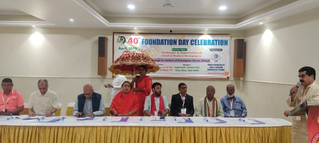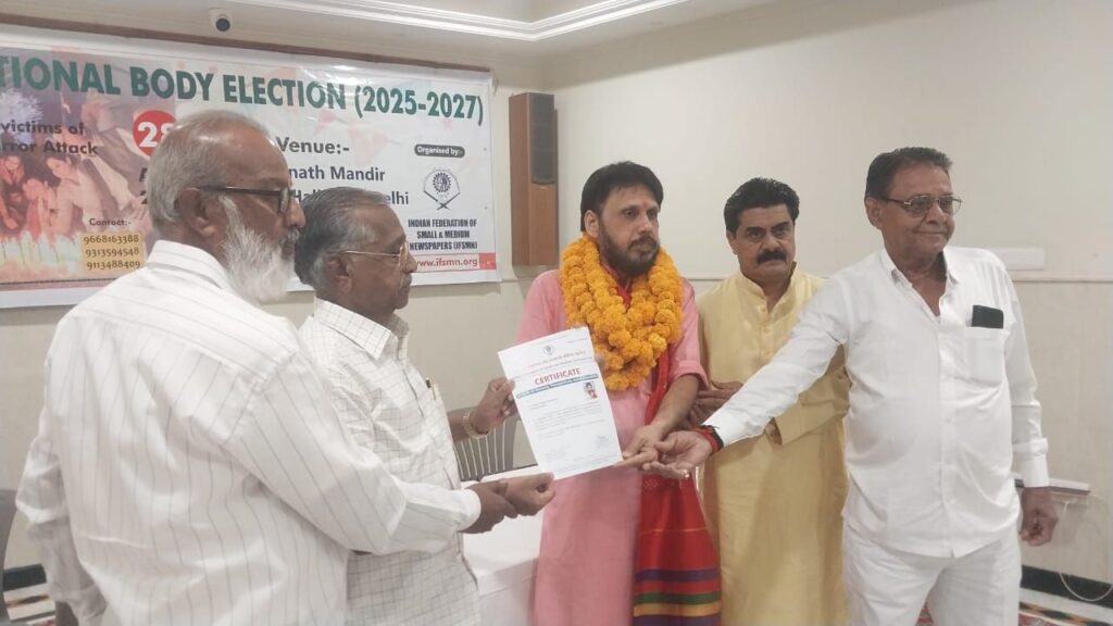 डॉ पबित्रा मोहन सामंतरे नई दिल्ली में सर्वसम्मति से इंडियन फेडरेशन ऑफ स्मॉल एंड मीडियम अखबारों के राष्ट्रीय अध्यक्ष चुने गए।इंडियन फेडरेशन ऑफ स्मॉल एंड मीडियम अखबार की एक आम बैठक, जगन्नाथ मंदिर ऑडिटोरियम, हौज़ खस में पूर्व-निर्धारित कार्यक्रम के अनुसार संगठन के मुख्य चुनाव अधिकारी श्री शिवप्रकाश और श्री के संजीव की देखरेख में आयोजित की गई थी संगठन का संविधान, वर्ष 2025-2027 के लिए चुनाव प्रक्रिया में, विभिन्न राज्यों के प्रतिनिधियों ने राष्ट्रीय कार्यालय बियरर्स के विभिन्न पदों के लिए नामांकन दायर किया और सर्वसम्मति से डॉपबित्रा मोहन सामंतरे को राष्ट्रीय अध्यक्ष चुना गया और उन्हें अपने स्तर पर नामांकन दाखिल करने वाले लोगों को अधिकार देने और भविष्य में संगठन का विस्तार करने का अधिकार दिया गया, जिसके अनुपालन में राष्ट्रीय राष्ट्रपति डॉ। सामंतरे ने श्री बी.एस.एस. देशपांडे, महासचिव, वीरेंद्र कुमार सैनी राष्ट्रीय कोषाध्यक्ष