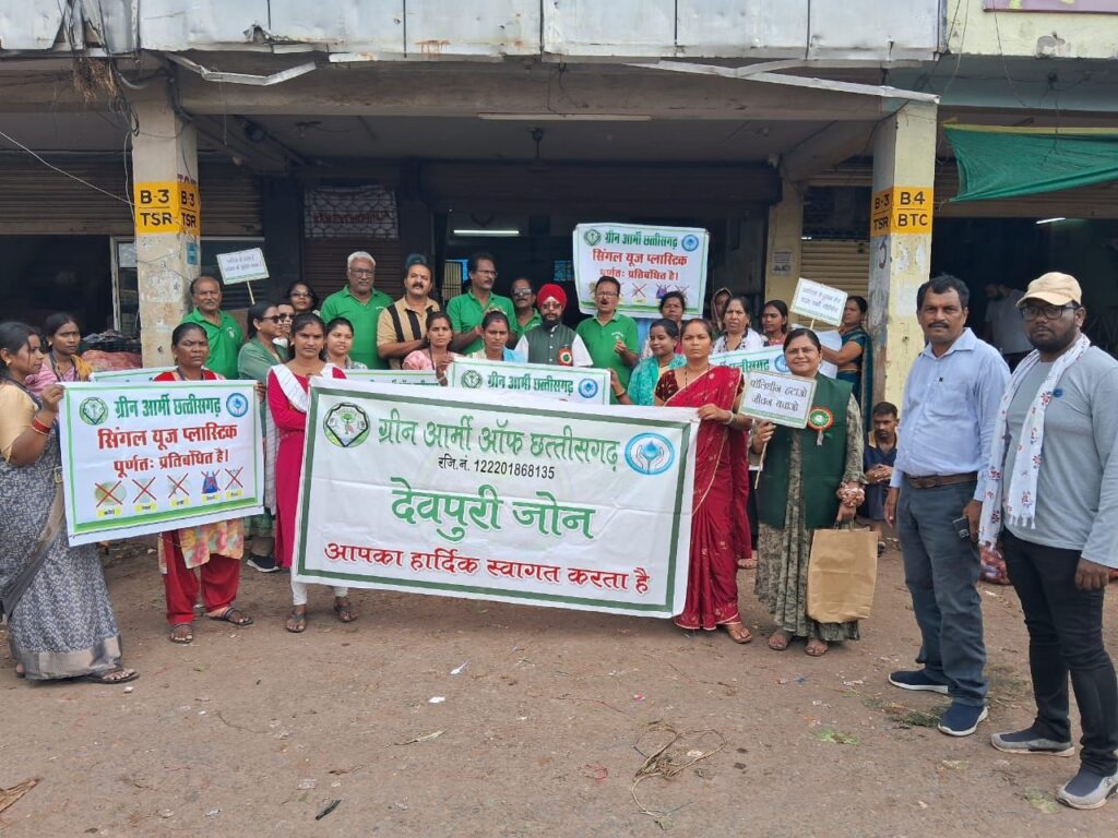 “ग्रीन आर्मी छत्तीसगढ़ की मुहीम सिंगल यूज़ प्लास्टिक के खिलाफ एक जंग: देवपुरी थोक सब्जी बाजार में चला सशक्त जागरूकता अभियान”