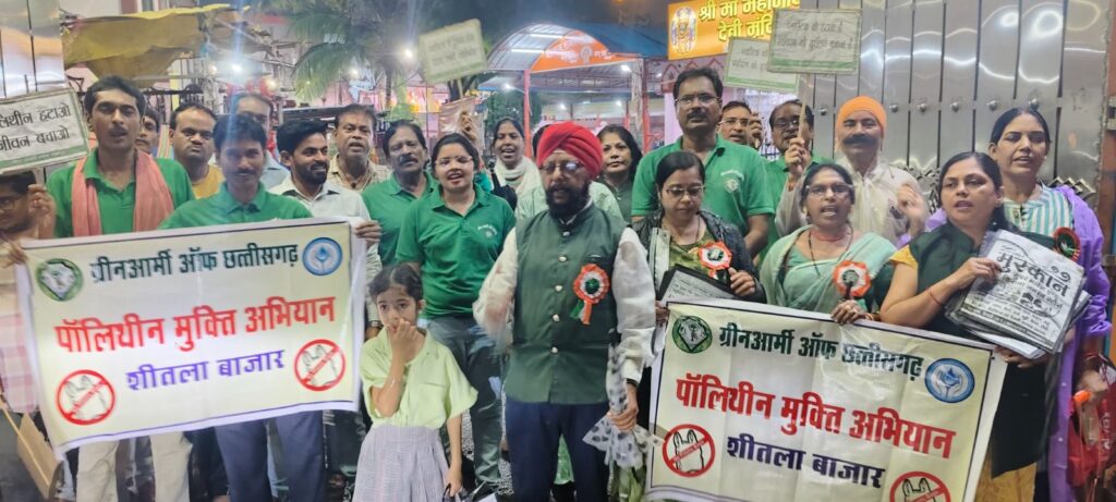 आपका आदेश न्यूज़।। रायपुर, छत्तीसगढ़: पॉलिथीन के अभिशाप से धरती को मुक्त करने की दिशा में एक क्रांतिकारी कदम उठाते हुए, ग्रीन आर्मी संस्था ने अब कमर कस ली है! संस्था ने एक बेहद महत्वाकांक्षी लक्ष्य निर्धारित किया है: राजधानी के शीतला बाज़ार, पुरानी बस्ती को मात्र एक महीने के भीतर पॉलिथीन-मुक्त बनाना!