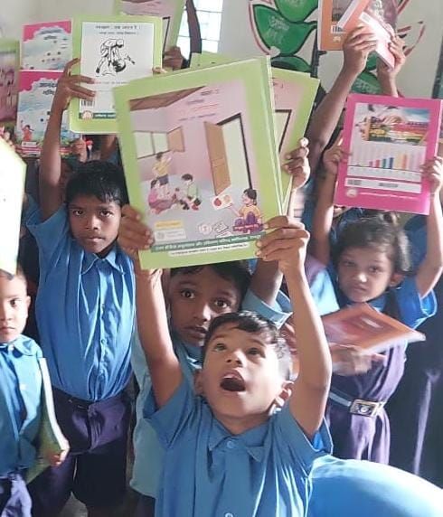 “पुस्तक पाकर बच्चे खुशी से झूम उठे“