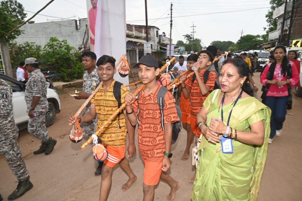 “उपमुख्यमंत्री श्री विजय शर्मा ने भगवा ध्वज दिखाकर पदयात्रा को किया रवाना और ध्वज पकड़कर पदयात्रा में शामिल हुए”
