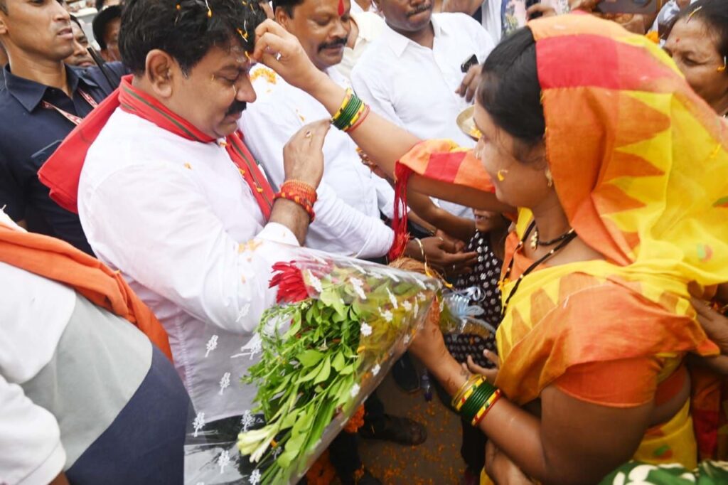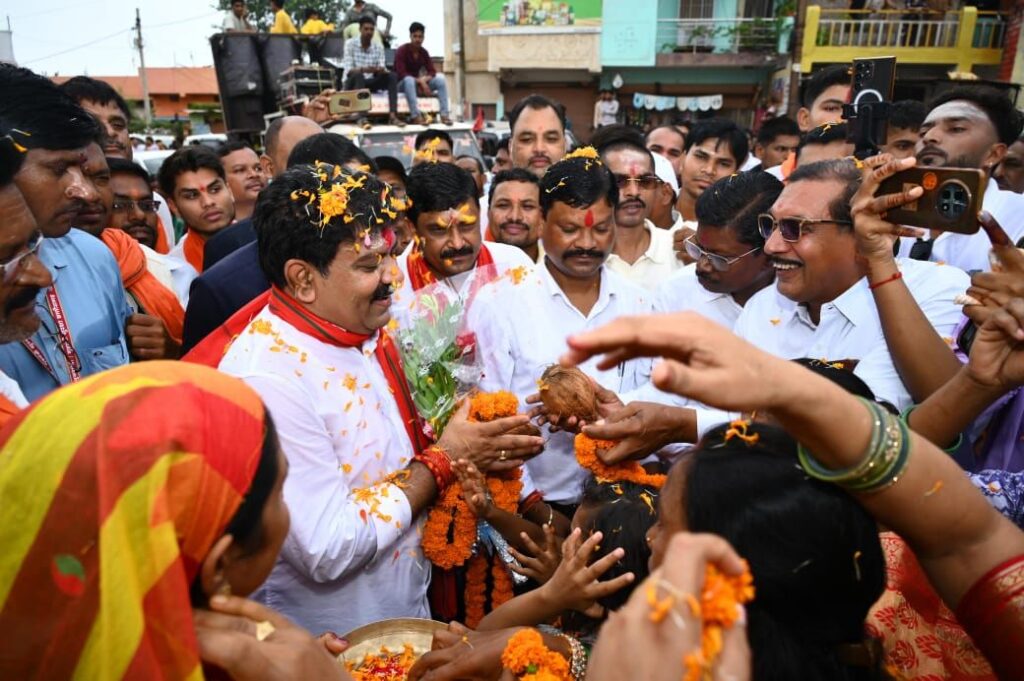 “पदयात्रियों को जगह-जगह पुष्प गुच्छ भेंट व तिलक लगाकर स्वागत और अभिनंदन किया”
