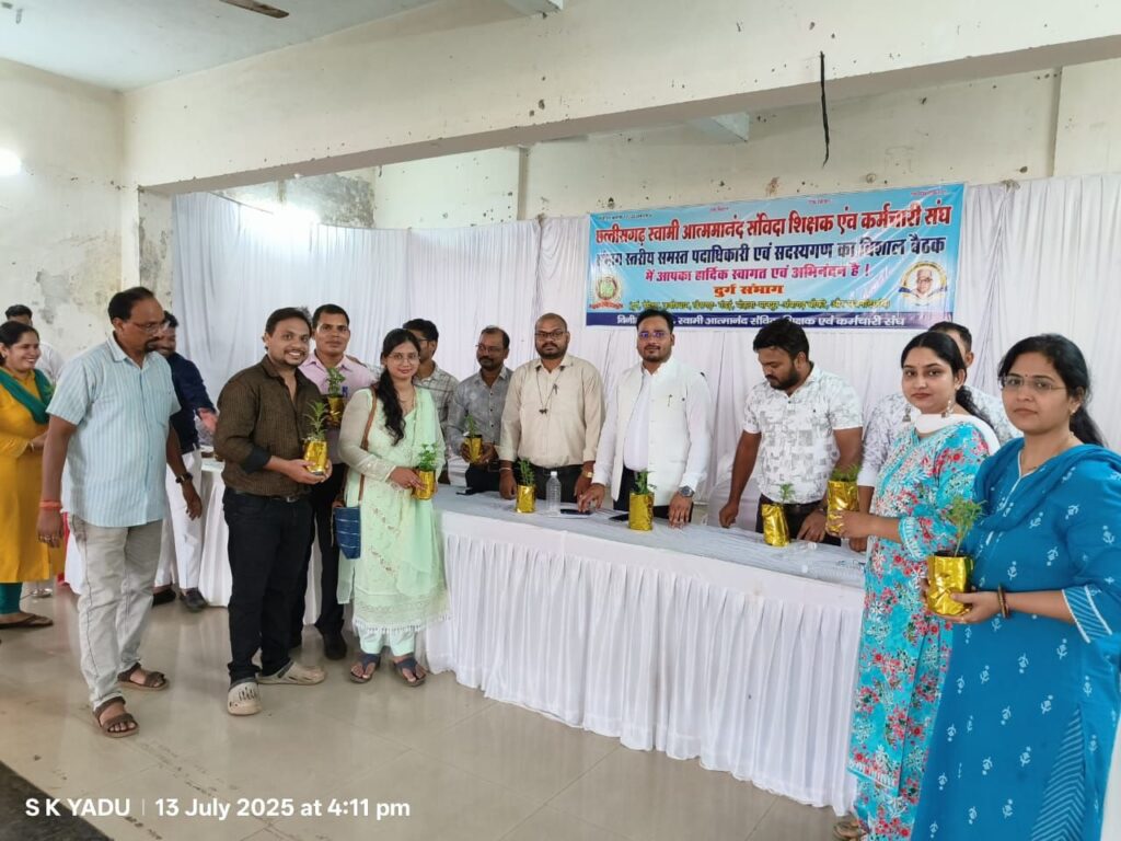 छत्तीसगढ़ _ दुर्ग – 16 जुलाई 2025 – स्वामी आत्मानंद संविदा शिक्षक एवं कर्मचारी संघ, छत्तीसगढ़ ने दुर्ग में आयोजित संभाग स्तरीय विशाल बैठक में संविदा शिक्षकों के नियमितीकरण की मांग को लेकर एक निर्णायक संघर्ष का बिगुल फूंक दिया है। प्रदेश अध्यक्ष श्री दुर्योधन यादव के ओजस्वी नेतृत्व में संपन्न हुई इस बैठक में दुर्ग, बेमेतरा, खैरागढ़ सहित विभिन्न जिलों से आए 200 से अधिक संविदा शिक्षकों एवं कर्मचारियों ने अपनी एकजुटता का परिचय दिया।