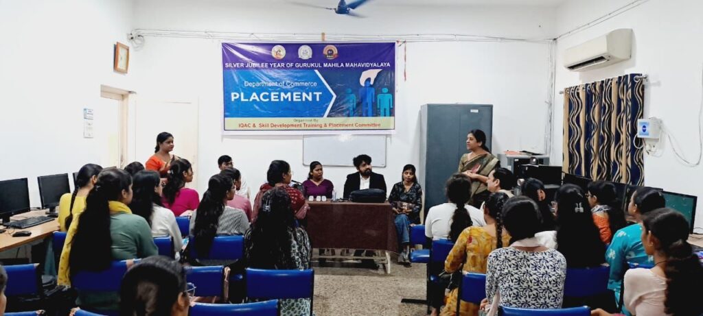 आपका आदेश न्यूज़ छत्तीसगढ़ रायपुर _गुरुकुल महिला महाविद्यालय, कालीबाड़ी में 22 अगस्त 2025 को आंतरिक गुणवत्ता आश्वासन प्रकोष्ठ (IQAC), स्किल डेवलपमेंट ट्रेनिंग एवं प्लेसमेंट समिति तथा वाणिज्य विभाग के संयुक्त तत्वावधान में प्लेसमेंट कार्यक्रम का आयोजन किया गया। वाणिज्य विभाग की छात्राओं के लिए रोज़गार के अवसर उपलब्ध कराने के उद्देश्य से यह प्लेसमेंट कार्यक्रम एनआईआईटी द्वारा एक्सिस बैंक एवं एच डी एफ़ सी बैंक के रिक्त पदों की भर्ती के लिए आयोजित किया गया । प्लेसमेंट की प्रक्रिया में तीन चरण होगी | प्रथम चरण में छात्राओं के मौखिक कौशल एवं बैंक से सम्बंधित ज्ञान को परखा गया। इस अवसर पर NIIT के छत्तीसगढ़ हेड श्री विकास पाण्डेय, काउंसलर सुश्री भारती बिसेन, श्री मौसम एवं श्री चिंता माड़ी सहित उनकी टीम ने विशेष रूप से उपस्थित होकर छात्राओं को कैरियर मार्गदर्शन प्रदान किया एवं चयन प्रक्रिया संचालित की।