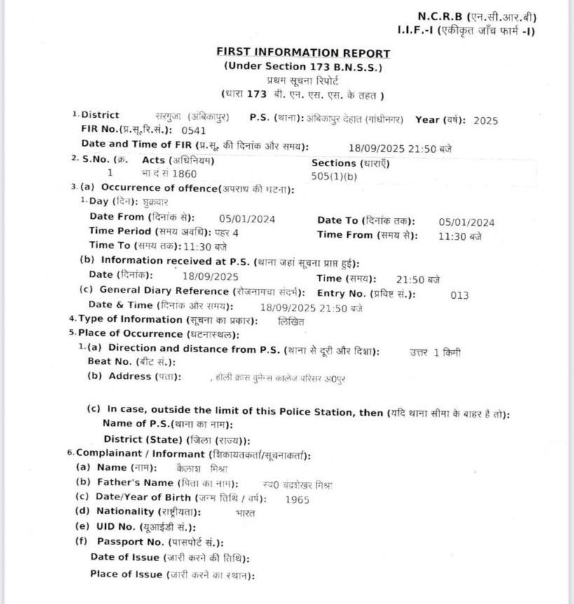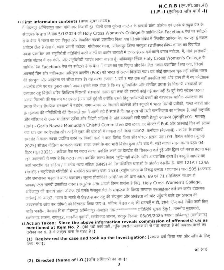 होली क्रॉस विमेन्स कॉलेज अंबिकापुर में विवादित नक्शे पर प्राचार्या शांता जोसफ पर एफआईआर – प्राचार्य के रहते कैसे होगी निष्पक्ष जाँच?