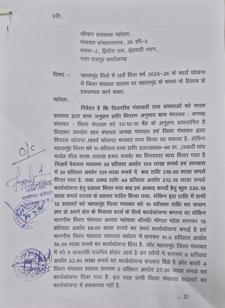 “कार्ययोजना को लेकर महासमुंद जिला पंचायत में भेदभाव”