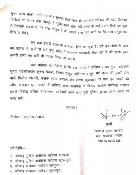 “पत्रकार प्रशान्त पाण्डेय की हत्या की साजिश रचने वाले भ्रष्ट तंत्र का पर्दाफाश — आईजी सरगुजा रेंज से शिकायत, सुरक्षा की मांग”