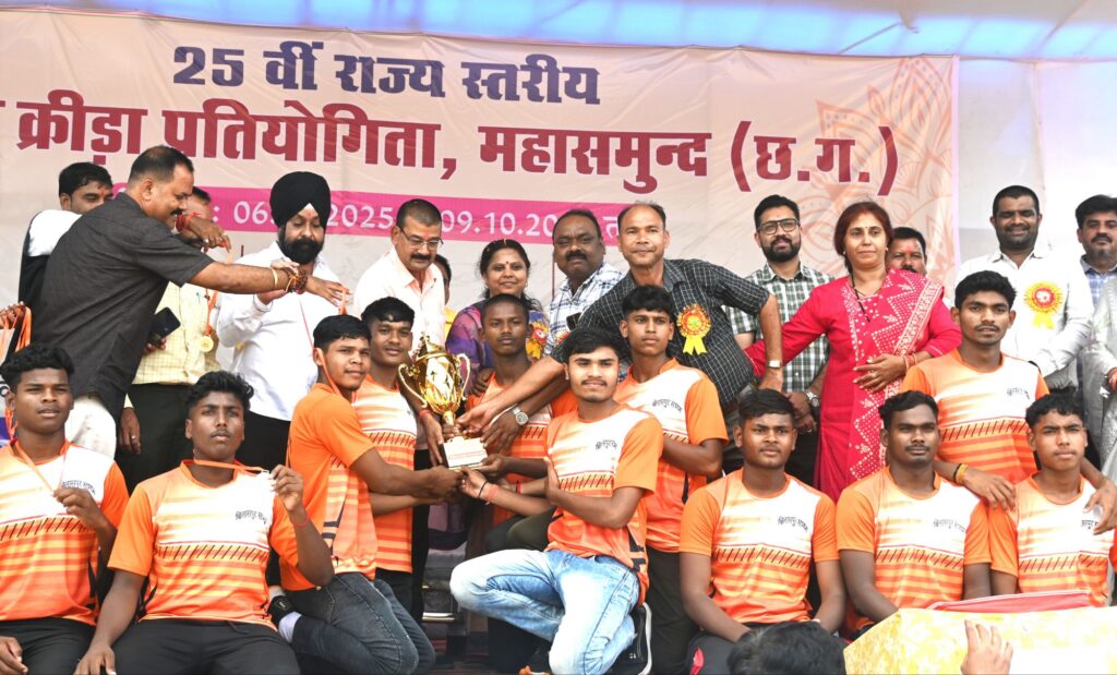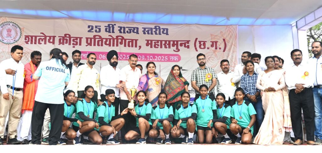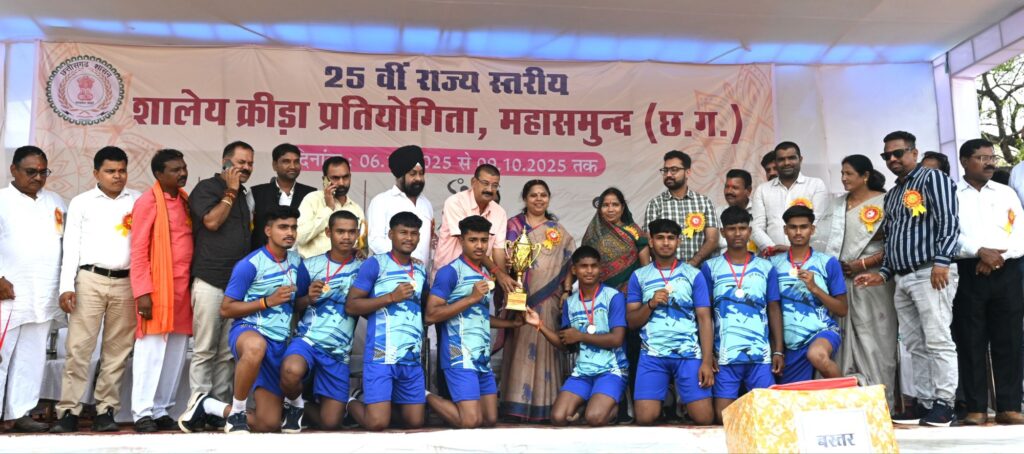 महासमुंद 9 अक्टूबर 2025/ जिले में 25वीं राज्य स्तरीय शालेय क्रीड़ा प्रतियोगिता का समापन आज सासंद श्रीमती रूपकुमारी चौधरी के मुख्य आतिथ्य में जिला मुख्यालय स्थित मिनी स्टेडियम में हुआ। कार्यक्रम का समापन खिलाड़ियों द्वारा आकर्षक मार्च पास्ट के साथ किया गया। इस अवसर पर स्कूली छात्राओं द्वारा सांस्कृतिक कार्यक्रम की प्रस्तुति भी दी गई। विजेता खिलाड़ियों को सांसद श्रीमती रूपकुमारी चौधरी द्वारा कप और प्रमाण पत्र देकर सम्मानित किया गया। साथ ही समस्त कोच एवं प्रतियोगिता में भूमिका निभाने वाले अधिकारियों को स्मृति चिन्ह प्रदान किया गया। प्रतियोगिता में बिलासपुर संभाग ने ओवर ऑल चैंपियन का खिताब हासिल किया। द्वितीय स्थान रायपुर संभाग को मिला। इस अवसर पर जिला पंचायत अध्यक्ष श्रीमती मोंगरा पटेल, स्काउट गाइड के राज्य आयुक्त श्री इंद्रजीत खालसा, छत्तीसगढ़ बीज निगम के अध्यक्ष श्री चंद्रहास चंद्राकर, स्काउट गाइड संघ के जिलाअध्यक्ष श्री येतराम साहू, जिला हैण्डबाल संघ के अध्यक्ष श्री प्रदीप चंद्राकर एवं कलेक्टर श्री विनय कुमार लंगेह मौजूद थे।