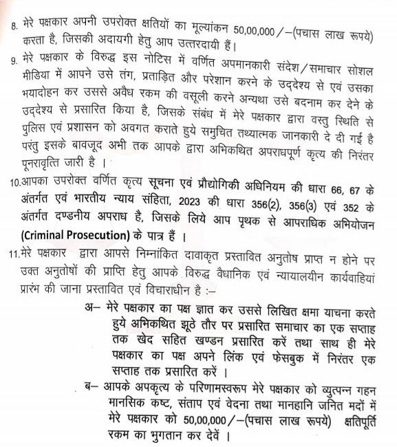 ₹ 50 लाख की ‘लॉटरी’ का सपना :सबसे हास्यास्पद हिस्सा वह ‘5’ का अंक है जिसके पीछे सात शून्य लगे हैं। ₹50,00,000/-! जशपुर के जंगलों में मंगल ढूंढने निकले साहब को लगता है कि एक नोटिस भेजकर पत्रकार का बैंक बैलेंस खाली करवा लेंगे। कानून की भाषा में इसे SLAPP (Strategic Lawsuit Against Public Participation) कहते हैं, यानी ‘डराने के लिए दागा गया कानूनी गोला’। लेकिन अमित पांडेय का जवाब कोई साधारण कागज नहीं, बल्कि उन अफसरों के अहंकार पर एक ‘संवैधानिक सर्जिकल स्ट्राइक’ है।