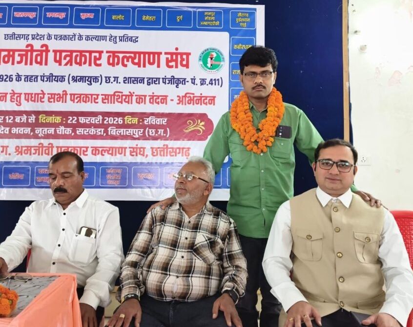 बिलासपुर। छत्तीसगढ़ श्रमजीवी पत्रकार कल्याण संघ के संगठन विस्तार और मजबूती की दिशा में एक महत्वपूर्ण कदम उठाते हुए गणेश तिवारी को बस्तर संभाग का अध्यक्ष नियुक्त किया गया। यह निर्णय बिलासपुर जिले के ग्राम सरकंडा स्थित नामदेव भवन में आयोजित एक गरिमामय कार्यक्रम में सर्वसम्मति से लिया गया। कार्यक्रम में छत्तीसगढ़ के विभिन्न जिलों से बड़ी संख्या में पत्रकारों की उपस्थिति रही, जिससे आयोजन को प्रदेश स्तरीय स्वरूप प्राप्त हुआ।