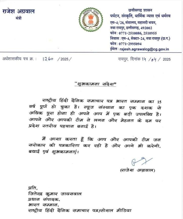 भारत सम्मान का 15 वर्षों का सफर पत्रकारिता के क्षेत्र में एक प्रेरणादायक उदाहरण है। यह केवल एक समाचार पत्र नहीं, बल्कि जनभावनाओं का सशक्त माध्यम बन चुका है। आने वाले वर्षों में भी इसी प्रतिबद्धता के साथ समाज के प्रति अपनी जिम्मेदारी निभाने की उम्मीद जताई जा रही है।
