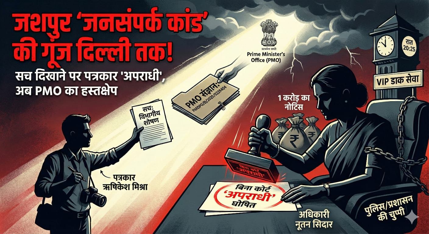 सच दिखाने पर पत्रकार को बिना कोर्ट के घोषित किया ‘अपराधी’, 1 करोड़ के नोटिस के बाद अब PMO ने लिया संज्ञान… ।। आपका आदेश न्यूज़ ।। रायगढ़/जशपुर/नई दिल्ली। विशेष रिपोर्ट – : छत्तीसगढ़ के जशपुर जिले में एक अधिकारी के अहंकार और लोकतंत्र के…